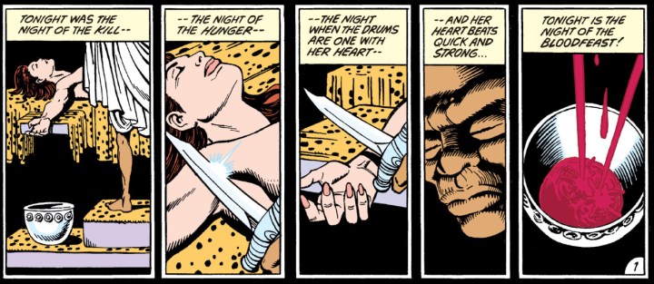 Bu ritüel sadece dolunayda yapılabiliyor ve bir insanın kurban edilmesini gerektiriyor. Minerva, iktidar ve ölümsüzlük şansını elde edebilmesi için ritüelin kendisine yapılmasını istedi. Chuma bir fedakarlık olması gerektiğini açıkladığında Minerva, kendilerini mağaradan kurtaracağını söyledi. Önce Dr. Leavens’i öldürüp kanını içti. Kanı içtikten sonra Minerva Cheetah’a dönüştürüldü. Ve böylece Wonder Woman’ın en büyük azılı düşmanlarından biri yaratılmış oldu.