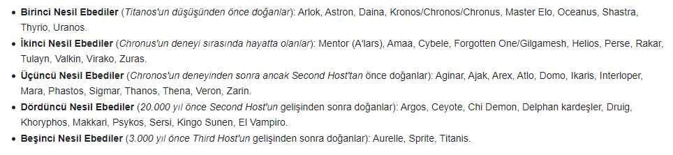 2 yıkıcı İç Savaştan sonra, “Eternals of Earth” bir barış yolunu seçer. Hayatlarını, kendilerini ve toplumları iyileştirmeye adamışlardır. Birlikte çalışırken başarabileceklerinin en iyi örneği, birkaç Eternals’ın irade ve zekayı tek bir güçlü varlıkta birleştirdiğinde ortaya çıkan Uni-Mind gücüdür.