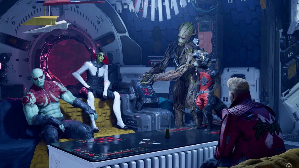 Marvel’s Avengers’ta elbette ki filmlerdeki oyuncuların suratlarını kullanmadılar ve Marvel’s Guardians of the Galaxy’de de bu böyle devam ediyor. Yapım maliyetleri artmaması adına anlıyorum, zaten oyuncular da kabul etmeyebilir. Yine de Marvel’s Avengers’ta suratlarda korkunç bir tuhaflık hissediliyordu. Marvel’s Guardians of the Galaxy için ise gönül rahatlığıyla söyleyebilirim ki oyundaki karakterlere bayıldım. Birkaç saate hemen alışıyorsunuz ve seviyorsunuz. Groot’a filmdeki kostümünü giydirdim, geri kalanlara ise hiçbir değişiklik yapmadım. Filme nazaran yeni tarzları daha da güzel olmuş. Seslendirmeler kesinlikle çok başarılı. Aralarındaki tartışmalar, kavgalar ve şakalar eğlenceliydi. Diyalogların büyük bir özenle yazılmasının da etkisi elbette var, yazarlar çok iyi iş çıkarmışlar.
