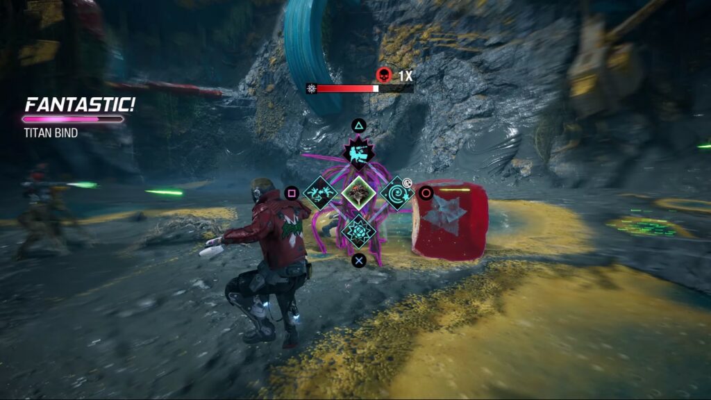 Oyunun gelişticisi Eidos Montreal, sadece Star-Lord’a odaklanan bir oyun yapmak istememiş. Ekibi de oynanışa dahil edip Guardians of the Galaxy oyunu yapmak istemiş. Ekibi oyuna dahil etmek için de Final Fantasy VII Remake’tekine benzer bir sistem kurmuş. Sadece kendi yeteneklerinizi değil, ekiptekilerin de yeteneklerini kullanabiliyorsunuz. Onların yeteneklerinden birini seçtiğinizde Star-Lord onlara sesleniyor ve seçtiğiniz kişi yeteneğini kullanıyor.