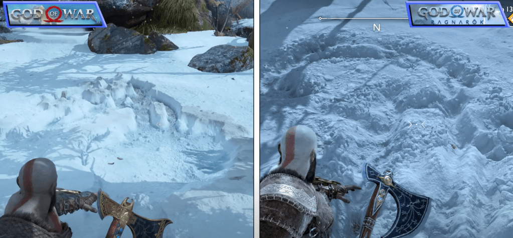 God of War Ragnarök oyunun en büyük sıkıntısı hikayesini ve oynanışını ağırdan satması diyebilirim. Özellikle prologue dediğimiz kısımlarda hem mekan ilk oyuna ait bir mekan, hem de oynanış da ilk oyunun daha ham bir oynanışı. Çünkü tüm rünlerimizi, güçlerimizi, özelliklerimizi elimizden almışlar. Yani çok temel saldırılar dışında hiçbir şeyimiz yok. Buna hikayesel açıdan kılıf bile uydurmamışlar. Üstüne hikayeyi 2018’deki oyunun sonuna bağlama işini de uzatarak yaptıklarından sönük saatlerle oyuna başlıyorsunuz. Ne yazık ki sadece bununla da kalmıyor. O kısımlardan sonra dahi bile ben fragmanlarda gördüğüm büyük aksiyonu, oyunun isminden gelen o büyük epikliği oyunun ilk kısımlarında hiç hissedemedim.