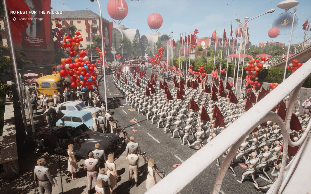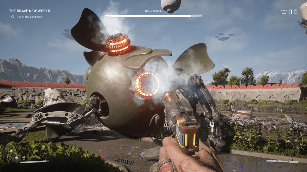 Far Cry oyunlarının bir diğer tatmin edici özelliği haritayı domine etmektir. Haritada çeşitli karakollar olur ve siz o karakolları temizledikçe harita da temizlenir. O bölgede düşmanlar devriye gezmeyi bırakır, alarm durumunda yanınıza deli gibi düşman yaratmayı (spawn) bırakır. Bu yüzden ana görevler ve yan görevlerde sorun yaşamadan rahat rahat gezmek için karakolları temizlemekten keyif alırım. Oynanışımı daha kolaylaştıracak ve korkmadan rahat bir şekilde etrafı keşfedebileceğim. Ayrıca çeşitli ödülleri de toparlayıp ekipmanlarımı geliştirebileceğim. Atomic Heart bunu tamamen farklı yapmış ve hiç hoşuma gitmedi. Farklı bir şey denedikleri için takdir ediyorum, Far Cry formülünü berbat bir hale getirdikleri için ise kınıyorum. Ne yapmışlar? Baklayı ağzımdan çıkarıyorum… Atomic Heart’ın Far Cry kısımlarında düşmanları sonsuz yapmışlar. Yanlış duymadınız SONSUZ. Haritayı kalıcı bir şekilde temizlemek için hiçbir şey yapamıyorsunuz. Her yer kamera dolu, her yer düşman dolu. Bunları patlatsanız bile uçan tamir dronları geliyor ve tamir ediyorlar. Anlamsız bir savaşa kaynak harcamak istemediğim için dışarda dümdüz koştum. Çünkü oyun beni buna itiyor. Keşfetmemi teşvik etmek yerine kaçmamı teşvik ediyor. Kaçtığınızda düşmanlar size yetişemiyor. Neyse ki geçici olarak o alandaki tüm robotları deaktif bırakabiliyorsunuz. Ama onu da öyle bir dolaylı yola koymuşlar ki iyice sıkılalım diye uğraşmışlar.