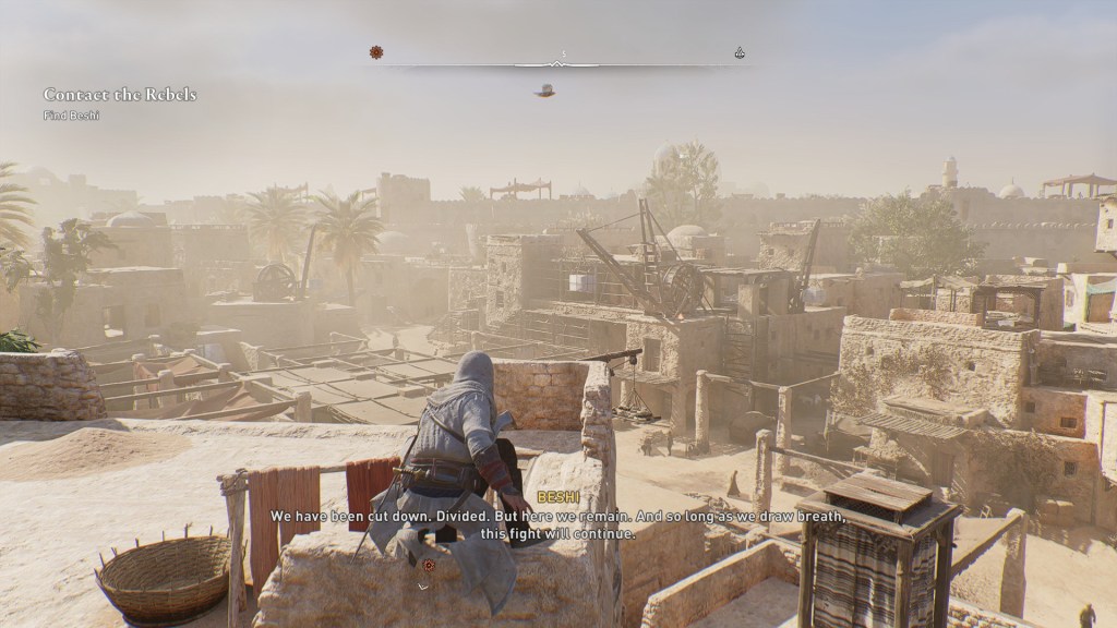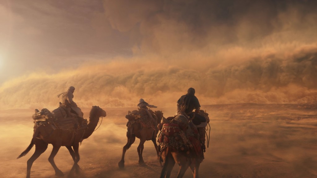 Mirage’da gözüme en çok çarpan, beni en çok rahatsız eden şey hikaye sunumuydu. Özellikle başlarda çok yadırgadım… Daha geçen gün Cyberpunk 2077 Phantom Liberty’nin yüksek prodüksiyonlu sinematiklerini görmemle de ilgisi olabilir. Assassin’s Creed Mirage’ın sunumunu hiç ama hiç beğenmedim. Düşük prodüksiyonlu amatör bir tiyatro gibi ruhsuz oyunculuklar eşliğinde uzaklara bakıyorlar. Bunu düzgün yapsalar belki özgün bir tarz olabilirdi diyeceğim de bazen lise öğrencileri kendince bir film çekmiş gibi de hissettiriyor. Teknik anlamda da çok zayıf. Yüz animasyonları ve yüz dokuları geçen nesilden kalma gibi. İlgi çeken sinematik kurgusu da yok. Klasik bir şekilde kim konuşuyorsa kamera ona çapraz açıdan bakıyor. Diyalog yazımı da oldukça zayıf. Son oyunlar da hep kötüydü de bu oyunda artık iyice battı. “Ubisoft abi ne bekliyorsun?” bence dememeliyiz.