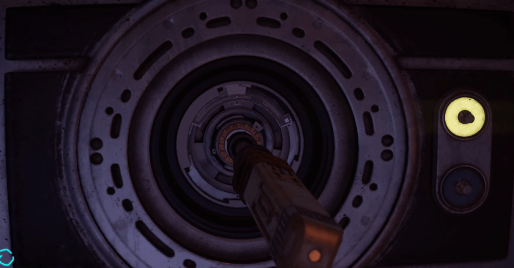 No Man’s Sky gibi gemiyle özgürce iniş kalkış yapamıyoruz. Ancak Starfield gibi de siyah yüklenme ekranıyla, oyunun akışını kesen arayüzden seyahat de etmiyoruz. Gezegenler arası seyahat ederken sol alttaki küçük pencereden hyperdrive’ın varış konumunu seçiyorsunuz. Devasa pencere açılmadan konum seçmek deneyimi güzelleştirmiş. Gezegene inerken de Starfield’daki gibi bir PNG görseline değil, gerçekten 3 boyutlu bir gezegene yaklaşıyorsunuz. İnerken bulutlar ekranınızı kısmen kapatıyor ve arka planda yükleme yapıyor. Yüklenmenin sonlarına doğru bulutlar azalıyor ve temiz bir geçişle iniş yapıyorsunuz.