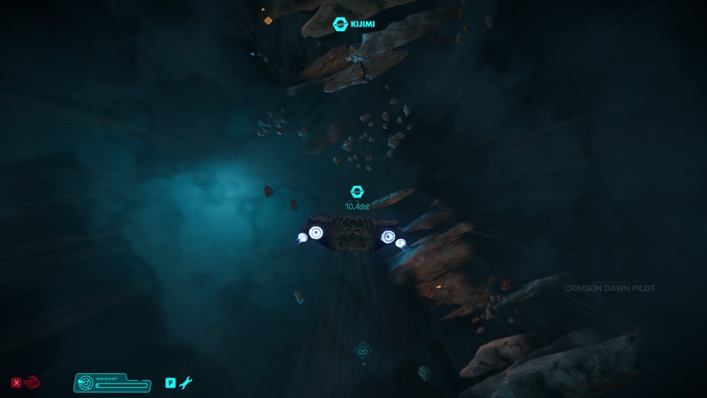Uzay kısmı, Starfield gibi küçük bir odadaymışsınız hissiyatı vermiyor. Gezegenin yörüngesine çıktığınızda geniş bir alan var. Etrafta çeşitli hurdalar, çöplük alanlar, keşfedilecek birkaç yer var. Oraları keşfedip geminizi geliştirmek için parçalar toplayabiliyorsunuz. Keşfederken düşman olduğunuz örgütler size saldırabiliyor, etrafa yerleştirilmiş mayın falan olabiliyor, dikkatli gezmeniz gerekiyor.