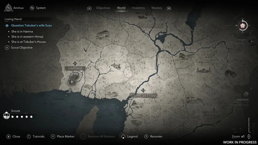 Gelelim formülün doruk noktasına. Harita yine büyük ama ikon bombardımanına tutulmuyorsunuz. Oyunun önerdiği modda oynarsanız, size verilen bilgiye göre görevin konumunu tahmin etmek zorundasınız; yani ikonu kendiniz işaretleyip o civarda araştırmalar yapıyorsunuz. İşaretinizin çevresinde koşup görevi aramakla uğraşabilirsiniz ya da Scout’larınız boştaysa o bölgeye gönderip konumunu doğrudan öğrenebilirsiniz. Yalnız Scout’larınız her mevsimde sınırlı. Hakkınız bittiğinde doldurmak için para harcamanız gerekiyor. Tahmin haklarınızı dikkatli kullanmalısınız. Görevin konumunu sürekli bulmaya çalışmak biraz bayabiliyor ama genel olarak bu yaklaşımı sevdim. Bu özelliği ayarlardan kapatabiliyorsunuz ancak bunu kapattığımda oyuna karşı heyecanımın azaldığını fark ettim. Keşfi gerçekten öldürüyor.